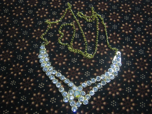 Kalung bahan tembaga dengan liontin berbentuk huruf ‘V’ dengan finishing lapis emas, full batu cantik.