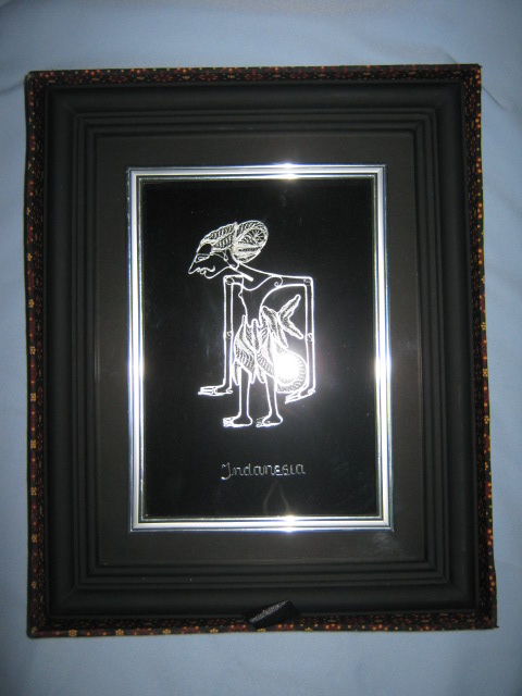 Pigura wayang tunggal perak, bahan tembaga lapis perak, ukuran wayang 12 cm, dengan tulisan "Indonesia", ukuran frame tinggi 30 cm lebar 24 cm, model pigura 3 dimensi, finishing cat halus, lengkap dengan kardus batik. Tersedia berbagai macam jenis tokoh wayang. Harga murah langsung pengrajin.