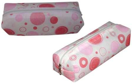 Tempat pensil terbuat dari kain spunbond 75gr motif, dilengkapi retsleting, ukuran lebar 8 cm, panjang 20 cm, tinggi 3 cm.