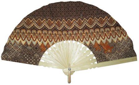 Kipas Batik dari bahan kayu dan kain batik dengan jari 17 buah, ukuran panjang 38 cm, tinggi 21 cm, cocok untuk souvenir pernikahan.