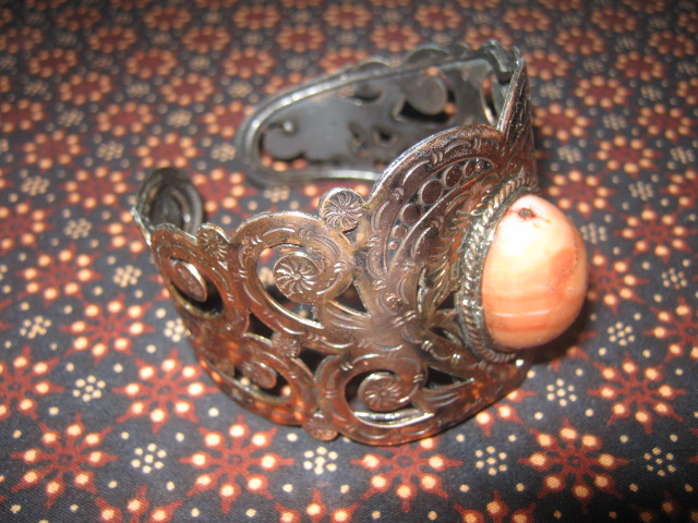 Gelang bahan kuningan dengan batu akik ditengan, finishing tembaga bakar.