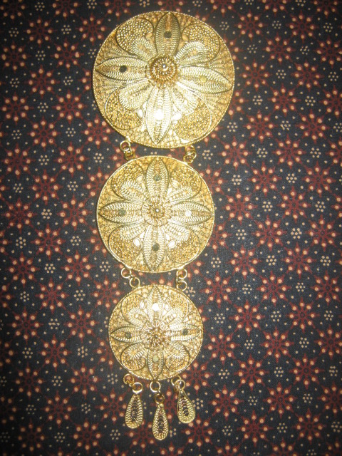 | Bros susun 3 bahan tembaga ukuran tinggi 18 cm, lebar 8 cm, finishing lapis emas murni. Permintaan katalog produk bros via email cinderamata_jogja@yahoo.com atau cinderamatajogja@gmail.com. |