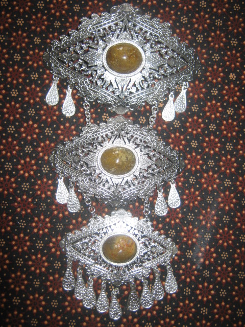 Bros bahan kuningan ukuran tinggi 21 cm lebar 11 cm, finishing lapis perak.